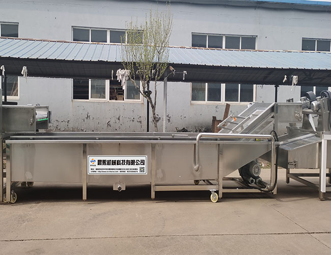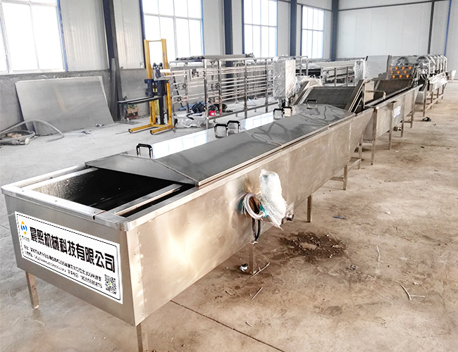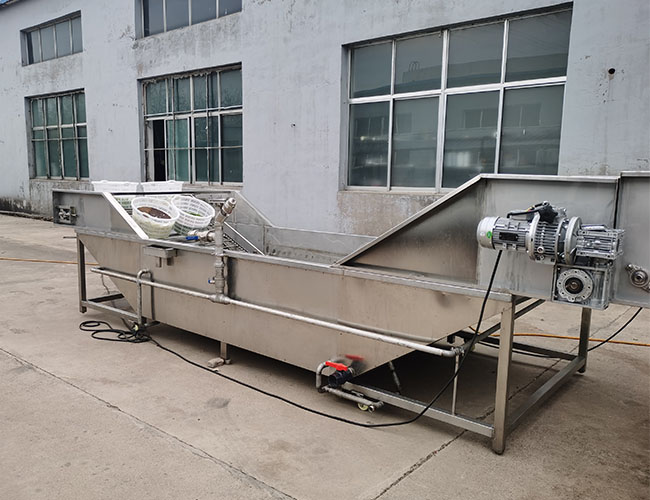 2.第二步清洗機,主要通過水與氣體讓水產生鼓泡,雞鴨解凍后,需要清洗機清洗干凈表面的雜質,模擬手工清洗,不損傷產品,采用sus304食品級不銹鋼網帶輸送,清洗后的雞鴨,通過網帶輸送到下一步工序。減少人工操作,全自動化。